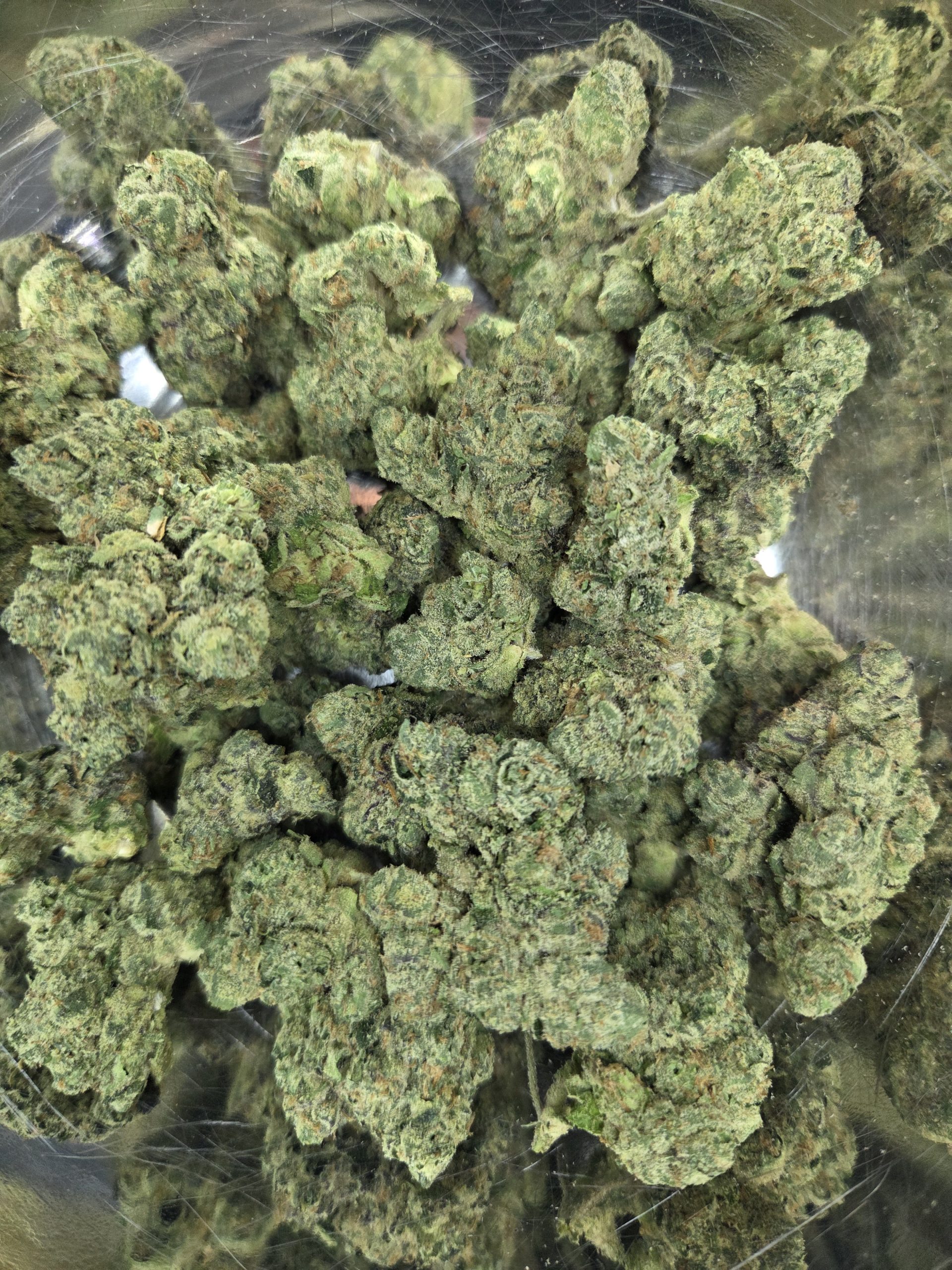 Appearance: Lumpy, bright green and orange buds with sticky, barely cloudy trichomes. Looks exactly like Sour D.